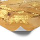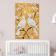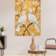 Background: The background features a textured gold-colored wash with decorative gold-leaf style accents on the flowering branches.