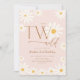 TWO Wild daisy floral 2nd birthday party invitation Perfect for a floral theme birthday celebration. Cute girly design in muted blush pink. Features hand-drawn daisy flowers and trendy modern typography script font. Stylish, elegant secondgirls bday celebration with a touch of boho chic. Personalize with your own details. Printed Zazzle invitations and/or instant download digital printable template.
