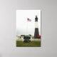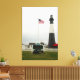 Ein Foto des Leuchtturms Tybee (auf der Insel Tybee außerhalb von Savannah, Georgia) mit dem Schild der Leuchtturmstation Tybee Island und der amerikanischen Flagge auf einem Leinwand