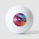 Ein 3-er-Paket von Value Golf Balls, mit einem Bild eines Tye Dye Design = (Tye Dye#10) = (Art by P.J.M.), = Colors=Maroon, Dark Lila, Pink, Light Blue, Orange, Yellow, Green, White Personalize, "Dein Name hier" = Weiß, Farbe, Text