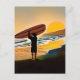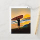 Typ am Strand mit Surfboard bei Sonnenuntergang Postkarte