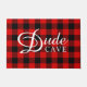 Einzigartige, elegante und dekorative, moderne Bauernstube mit niedlichem Typ Höhle Zitat, auf einem klassischen rot-schwarz gefärbten Buffalo Lumberjack Karo Muster Design.