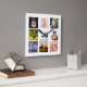 Eine Wanduhr als Geschenk für einen 70. Geburtstag für einen Typ, der sein Leben mit einer Collage von 8 eigenen Fotos feiert. Vorlagen für einen Namen, 70 Jahre und ein Datum. Geburtsdatum oder das Datum des Jahrestages. Schwarze Buchstaben. Weißer Hintergrund.
