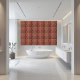 Diese Kachel weist ein gewagtes und bunt geometrisches griechisches Schlüsselmuster auf, das traditionelle Motive aus Mäander und stilisierte Blumenelemente enthält. Die lebhafte Farbpalette des Designs mit Rot, Blues und Gold verleiht der klassischen griechischen Ästhetik eine moderne Drehung. Diese Kachel ist ideal geeignet, um jedem Raum eine Touch hellenischer Eleganz hinzuzufügen. Sie eignet sich perfekt für Backspritzen, Akzente oder dekorative Rahmen.