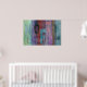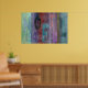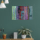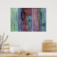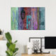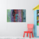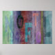 Modernes Art Poster mit abstraktem Design mit Typografie gegen farbenprächtiges abstraktes Design in gedämpften, grunfarbigen Farbtönen in Blau, Rot, Grün, lila, Lavendel und aquamarin. Ideal für urbanes Interieur.