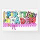 Typografie-Banner erster Klasse Das Bild enthält das Wort "Erste Klasse" in einem farbenfrohen und spielerischen Stil geschrieben. Jeder Buchstabe ist einzigartig gestaltet mit verschiedenen Mustern und Elementen, die sich auf die Schule und Kreativität beziehen.