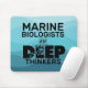 Ein blaues Wellen-Hintergrundmauspad. Text sagt: Meeresbiologen sind tiefe Denker