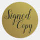 Texturierte gelbe goldsignierte Copy Writer Author Classic Round Aufkleber. Mit schöner, individueller schwarzer Typografie auf goldfarbenem Texturdruck. Hervorragend für Bucheinführungen und Signaturen. Geeignet für eine breite Palette von Genres. Text und Schriftart können an Ihre Bedürfnisse angepasst werden. Karo in unserem Shop, Bookles, für eine große Auswahl an Aufklebern und anderen durchdachten Branding-Artikeln für Autoren, Autoren und andere Buchleute.