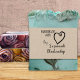 Das einfache Design verfügt über einen serifenlosen und kalligraphischen Schriftart mit geschwungenem, lockigen Herzschlag für Ihre "handmade with Liebe" Produktkennzeichnung. Klicken Sie auf den Link, um Ihre Daten hinzuzufügen, oder klicken Sie auf Anpassen, um einen Schriftart auszuwählen, der Stil, die Größe und die Farbe, die Sie möchten, verwendet.