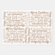 Personalisieren Sie diese moderne Typografie Muster Sortiment von Packpapier Blätter in neutralen Farben. Weiche Tans und reiche Braun in Verbindung mit Weiß sind eine schöne neutrale Wahl für Ihre individuelle Weihnachtsgeschenkverpackung. Das erste Blatt und das dritte Blatt haben Platz, um Ihren Namen in Braun oder Weiß auf Bräune einzufügen, inmitten der modernen Mischung aus Schriftart und Feriengrüßen. Blatt zwei ist ein komplimentäres typografisches Design von diagonalen Streifen in schokoladenbraun mit Merry und Bright in weiß gemischt mit Holiday Cheer in einer helleren Sandfarbe auf weiß. Erstellen Sie Ihre eigenen personalisierten typografischen Verpackungsblätter in dieser raffinierten, neutralen Palette von braun, braun und weiß.