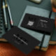 Die Visitenkarte zeichnet sich durch ein elegantes, minimalistisches Design mit dunkelgrauem Hintergrund, große Initialen in einem klassischen Serif-Schriftart und den vollen Namen und die Professionalität im Kontrast zu Weißtext aus. Auf der Rückseite wird ein QR-Code für Buchungen und Kontaktdaten durch eine vertikale Linie getrennt, wobei für jede Kontaktmethode Symbole eine moderne Touch hinzugefügt werden. Das Layout ist sauber und beruflich und betont Lesbarkeit und Eleganz.