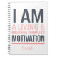 Typografie, die sagt, ich sei ein lebendiges und atemberaubendes Beispiel der Motivation. Personalisiertes Notebook