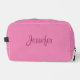 Individuelle Elegant Modern Simple Template Typografy Script Name Monogram Initial Letter Upload Image Print Accessories / Bags & Wallets / Cosmetic & Toiletry Bags / Pink Solid Color Dopp Kit.