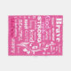 Fleecedecke. Mit einem rosa Typografischen ART Design, Personalisieren Sie mit dem Namen eines Mädchens. Ändern Sie nur den Text, den Sie möchten. ⭐ Dieses Produkt ist zu 100% benutzerdefinierbar. *****Klicken Sie auf die SCHALTFLÄCHE ANKLICKEN, um hinzuzufügen, zu löschen, zu verschieben, zu verändern, umzudrehen, zu drehen, etc...alle Grafiken oder Texte oder verwenden Sie die Eingabefelder. ⭐ 99% meiner Designs in meinem Geschäft sind in Schichten gemacht. Damit können Sie die Größe und den Text der Grafik und des Textes so anpassen, dass sie perfekt zu jedem Produkt passen. 📌 (Bitte vergewissern Sie sich vor der Bestellung, dass Sie die Größe der Grafik ändern oder verschieben) Sie können auch "TRANSFER DESIGN" auf anderen Zazzle-Produkten und passen das Design an die meisten Zazzle-Objekte an. (Schaltfläche ist rechts unten) Einige Textgrafiken sind zum Ausfüllen der Box(n) bereit, oder Sie können auf den "CUSTOMIZE"-Button klicken, um einen der Schriftart oder Grafiken hinzuzufügen, zu verschieben, zu löschen, zu verändern, die Hintergrundfarbe zu ändern oder zu verändern. Das Design wird mit hochauflösenden Vektoren und/oder Digitalgrafiken für einen beruflichen Druck erstellt. 📌 (DAS IST EIN DRUCK. Alle Zazzle-Produktdesigns sind "Drucke", sofern nicht anders unter "Über dieses Produkt"-Bereich angegeben) Das Design wird genau wie Sie es auf dem Bildschirm und auf dem Produkt sehen..Stellen Sie daher bitte sicher, dass Sie Ihre Änderungen an der Größenanpassung einer Grafik oder eines Textes vornehmen, die in die Bereiche passen und Ihre Schreibweise und Formulierung so aussehen, wie Sie es wünschen, in Größe, Farbe und Schriftart. Wenn Sie Fragen zum "NUR DESIGN" haben oder Hilfe benötigen, kontaktieren Sie mich bitte unter siggyscott@comcast.net oder besuchen Sie meinen Shop-Link: https://www.zazzle.com/store/designsbydonnasiggy (Kopieren und Einfügen) Ich werde Ihnen gerne helfen. ⭐ Alle anderen Fragen (Versand, Rückerstattung, Druck, Produkt, etc...) kontaktieren Sie bitte Zazzle oder den Maker ⭐ direkt ⭐. Vielen Dank für die Unterstützung und das Anhalten durch mein Geschäft - DesignsbyDonnaSiggy. © Donna Siegrist ⭐ ⭐ ZAZZLE verspricht 100% Zufriedenheit. Wenn du es nicht ganz Liebe, nimmt Zazzle es zurück! ⭐ ⭐ 1-888-8ZAZZLE (1-888-892-9953) Telefonstunden: Mo - Fr.: 09:00 - 17:00 Uhr PT (22:00 - 20:00 Uhr ET)