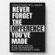 A bold and striking retication or apprefication plate for emergency services, firefighters, doctors, pastors usw. Perfect for a 'congratulations on your retirement' or thank you gift. This great "never forget the difference you've made" saying is featured in a block white typography machen wir schwarz background, perfekt for male ohrfeigen. Can be personalized with a name and date - or other message.