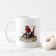 Tyrannosaurus Rex Boss sitzt an einem Schreibtisch Kaffeetasse