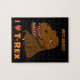 Dieses spezielle Puzzle hat einen beängstigenden Tyrannosaurus Rex, oder T-rex Dinosaurier, auf ihm. Es sagt: "I Liebe (Herz) T-rex." Auf der Oberseite ist Platz für Ihren Namen. Ersetzen Sie die Probe durch den Namen Ihres Kindes, um ihn oder sie in den Namen eines Dinosauriers zu machen.