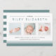 Mit unseren modernen, neutralen Gebärdenankündigungen im Collage-Stil, die drei Ihrer beliebtesten Neugeborenen-Fotos im quadratischen Format enthalten, präsentieren wir Ihnen die Ankunft Ihres Lieblingsbabe mit modernen Schriften und gestreiften Elementen in sanftem Schwarz und Weissgrün. Personalisieren Sie Ihre Babynamen, Geburtsdaten und Familiennachrichten mithilfe der angegebenen Felder.