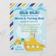 Genießen Sie die Seefarre mit dieser bezaubernden nautischen Einladung mit einem U-Boot, einer Schildkröte und einigen Blasen, die Revers ist ein lustiger, preppy Streifen!