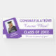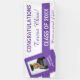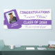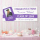 Dieses fett formatierte Textdesign hat eine Vorlage, mit der Sie den Namen Ihrer High School oder Uni, das Klassenjahr, den Namen und das Bild Ihres Absolventen sowie eine persönliche Nachricht eingeben können. Wenn die Schulfarben Ihres Absolventen lila sind, ändern Sie den weißen Hintergrund einfach an die zweite Farbe.