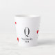 Moderne U R MY MVP Christlich Valentine's Monogram Latte Tasse, mit moderner Typografie und roten Herzen. Das Design dieses Valentins wird auf der Rückseite wiederholt und in der Mitte befindet sich ein ZOLLBARES MONOGRAMM, wo Sie Ihren ersten Platz hinzufügen können. Unter ist ein Platzhalter-Gruß und ein Christlicher Bibelverse für Ruth 1:16 (Wohin du gehst, werde ich gehen), den du personalisieren kannst, indem du den Gruß änderst oder deinen Namen hinzufügst. Die Tasse von MVP Valentine ist eine großartige Möglichkeit, Ihre Liebsten als Ihre wertvollste Person/Person am Valentinstag zu schätzen. Wählen Sie aus einer großen Auswahl an Valentinstag-Designs für Karten, Einladungen, Wohngestaltung, Kleidung und Geschenke, die von Berean Designs entworfen wurden. Die Tasse des Kaffees ist ebenfalls verfügbar.