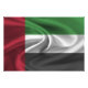 Foto mit der Fahne der VAE in gewelltem Stoffdesign. Dieses Design zeichnet sich durch die Flaggen-Farben und das Design der Vereinigten Arabischen Emirate mit einem wunderschönen Wellenstoff texturierten Effekt aus. Dieses Flag-Design ist eine großartige Möglichkeit, Ihnen zu zeigen, dass Sie stolz sind, aus den VAE zu kommen.