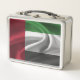 Mittagsschachtel mit der Flagge der VAE in gewelltem Stoffdesign. Dieses Design zeichnet sich durch die Flaggen-Farben und das Design der Vereinigten Arabischen Emirate mit einem wunderschönen Wellenstoff texturierten Effekt aus. Dieses Flag-Design ist eine großartige Möglichkeit, Ihnen zu zeigen, dass Sie stolz sind, aus den VAE zu kommen.