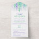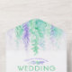 Loose Blume und Blätter, die botanische Aquarellmalerei Kunst Hochzeit ganz in einem einladen. Hübsches Hochzeitsprogramm in sanften Aquarelltönen in Blau, lila und frischem Grün auf einem knackigen, weißen Hintergrund. Personalisieren Sie diese abnehmbare Antwort Hochzeitseinladung mit Ihren eigenen Einzelheiten der Hochzeitsfeier und fügen Sie Ihre UAWG mit gastronomischen Optionen zu Ihren abnehmbaren Antworten hinzu. Andere Farben und passende Hochzeitsartikel sind erhältlich. © Original Aquarellmalerei und Design von Künstlerin und Designer Sarah Trett für www.mylittleedenweddings.com auf Zazzle.