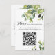 Diese elegante und preisgünstige 2 in 1 Umschließungskarte beinhaltet die Antwort auf Ihre Hochzeit mit qr-Code und für immer Bargeld-Anfrage anstelle von traditionellen Geschenken. Die Einrichtung ist mit einem wunderschönen Eukalyptus in Aquarellfarbe, anderen Grünpflanzen, Botanicalen und Blättern in verschiedenen Tönen und Grüntönen gestaltet. Elegante Skriptkalligraphie für die Gehäusekartentypografie und einfache, leicht lesbare Serif-Schriftart für Hochzeitswebseiten, Bräutigam- und Brautennamen und für Ihre Nachricht anpassbarer Text.