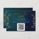 Eleganter QR Code Hochzeitswebkarte mit wunderschöner Marinekarte, blau, smaragdgrün und aquamarinem Hintergrund mit tönigen Sternen und zarten Imitaten vergoldeten botanischen Garland. Möglichkeit, Ihre Hochzeitswebsite-Adresse für diejenigen hinzuzufügen, die es vorziehen, Ihre Website-Adresse, sowie Ihr QR-Code-Bild. Wenn Sie noch kein QR-Codebild haben, folgen Sie bitte den Anweisungen auf der Vorlage, die Ihnen zeigen, wie Zazzle einen QR-Code für Sie erstellen kann! Teil unserer Kollektion "Zauberhafte Himmelfahrt Nacht" mit einer Vielzahl von Produkten zur Koordination. Die gesamte Sammlung finden Sie unter: https://www.zazzle.com/collections/enchanting_celestial_starry_night-119778618338709536