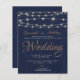 Einfache und moderne Hochzeitsvorlage. Gold und Weiß Kalligraphie auf einem Navy Blue Hintergrund mit hübschen Saitenleuchten, die die Oberseite des Designs schmücken. Enthält auch UAWG Details und ist einfach mit Ihren eigenen Details zu gestalten.