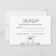 Eine einfache und elegante RSVP-Karte für eine weiße Hochzeit mit Vorlagen für die Antwort nach Datum, Namen etc. Zwei wunderschöne Schwäne, die ihre Köpfe zusammenbiegen und eine Herzform bilden. Weißer Hintergrund. Zurück: Name der Braut und Bräutigam, Datum der Hochzeit und Hochzeit. Mit einem Bild der beiden Schwäne.