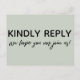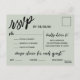 In bearbeitbarem Text wurde "freundlich antworten", groß und fett, auf der Vorderseite platziert. In einer modernen lässigen Handschrift erscheint unten eine Grafik mit dem Bild "Wir hoffen, dass du dich uns anschließen kannst!". Auf der Rückseite wurde derselbe einzigartige Schriftart verwendet, um Grafiken zu erstellen, die "uAwg", "m", "freundlich zu liefern" und "Menüwahl für jeden Gast:" Alle anderen Texte sind editierbar. Verwenden Sie die Vorlagenfelder, um so viel zu personalisieren, wie Sie möchten. Der Hintergrund kann in eine beliebige Farbe geändert werden, die Sie Anzug. // 100 //