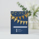 Rückgabekarte mit Umschlag für uAwg. Sleek. Modern. Chic. Schlichte Glasur - mit glitzernden Pennantenbannern in zwei Farbtönen goldenen Glitzer mit funkelnden blinkenden Konfetti in verschiedenen Größen und Schatten von Gold. Funkelnd Sterne in der Sternexplosion heben das Funkeln hervor. Ein sehr zeitgenössisches Schriftbild-Layout, das alles andere als traditionell ist. Es ist einfach und kurz. Sie sagt zu Ihren Gästen: "Wir werfen ein Party und es wird das Party eines Lebens sein!" Für die elegante, aber nicht traditionelle Braut und Bräutigam. FARBEN: dunkle königliche Saphir Kobaltblau und Gold, goldene Glitzer. Besonders geeignet für Herbst- oder Winterhochzeiten, Silvesterabende, Geburtstagsfeiern und Party-Ankündigungen zum Jubiläum.