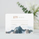 Stellen Sie sicher, dass Ihre Gäste mit unserer RSVP-Karte zum Thema Berge stilvoll antworten! Unser Design zeichnet sich durch eine majestätische Bergkette mit mächtigen Gipfeln und üppigen Wäldern aus, die die natürliche Schönheit und Ruhe der Berge einfangen. Passen Sie den Text auf dieser RSVP-Karte an, um Ihre Antwortzeit, die Optionen zum Essen und andere wichtige Details einzuschließen. Wählen Sie aus einer Reihe von hochwertigen Papiertypen, um Ihren Stil zu Anzug, und fügen Sie eine optionale Umschlag, um das Set zu vervollständigen. Ob Sie eine rustikale Hochzeit oder einen romantischen Ausflug planen, unsere RSVP-Karte ist die perfekte Wahl für Ihre Bergfeier. Außerdem macht es es Ihren Gästen leicht, sich lassen, ob sie sich mit Ihnen auf Ihrem Abenteuer in die Berge einstimmen werden. Erleben Sie die Schönheit und Romantik einer Hochzeit in den Bergen mit unserem atemberaubenden RSVP-Kartendesign. Bestellen Sie jetzt und vervollständigen Sie Ihre Hochzeitssaison!