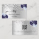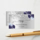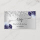 Ein Imitat silber aussehender Hintergrund mit Imitat Glitzer, Glitzern und marineblau und hellblau Blumen, Blume. Personalisieren und fügen Sie Ihre Namen, Hochzeitwebsite url für Ihre eigenen QR-Code und Text.