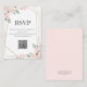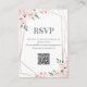 Anpassbare Hochzeitskarte RSVP QR Code Gehäuse Karte. Das blaurosa Blumenstrauß auf einem weißen Hintergrund mit einem geometrischen Rahmen aus Gold. Generieren Sie Ihren eigenen QR-Code über " Personalisieren Sie diese Vorlage" . Fügen Sie einfach Ihre Hochzeitswebsite-URL zu dem Bereich, der zur Verfügung gestellt wird, und ein brandneuer, einzigartiger QR-Code wird auf dem Design erscheinen, der direkt auf Ihre Hochzeitswebsite verlinkt, wenn die Kamera auf einem Smartphone gescannt wird.