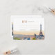 Die RSVP Card der Pariser Hochzeit in Urlaubsort, schön in Aquarellen gemalt! Diese atemberaubende Antwort-Beilage besticht durch eine typische Pariser Skyline mit dem berühmten Eiffelturm, den hübschen Kopfsteinpflasterstraßen und dem Triumphbogen. Diese RSVP-Karte ist ideal für die Ansammlung der Antworten Ihrer Gäste auf Ihre Hochzeitseinladung. Unsere Karte ist individuell anpassbar, sodass Sie den Text einfach bearbeiten können, um Ihre Hochzeitsdetails. Wählen Sie aus einer Vielzahl von Schriftart-Stilen und Farben, um Ihr Thema. Der hochwertige Druck sorgt dafür, dass Ihre Einladungen über Jahre hinweg hervorragend aussehen. Machen Sie Ihre Hochzeit in Urlaubsort einzigartig mit diesen schönen und romantischen RSVP-Karten. Bestellen Sie jetzt und bereiten Sie sich auf die Hochzeit Ihrer Träume vor!
