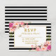 Aquarellfarben Blütenrosa Blush Gold und schwarze und weiße Streifen Hochzeitsrampe RSVP Card - Goldrahmen