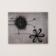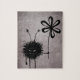 Es ist böse, aber es ist auch irgendwie niedlich. Und es Liebe Blume... Lieben, die sie tatsächlich essen. Die Blume des Bösen krügt in ihrer Vintagen Reinkarnation. Puzzle mit einer grinsenden Cartoon-Kreatur mit scharfen Zähnen, die eine Blume halten.