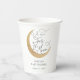 Über dem Mond duschen Babydusche Papiertassen. Design zeigt Imitate Goldmond mit "Wir sind über dem Mond" in einem niedlichen Kalligrafietext. Personalisieren Sie Ihre Daten oder klicken Sie auf "Weitere Anpassungen vornehmen", um Schriftart Stile, Größe und Farben zu bearbeiten.