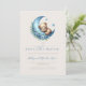 Diese niedliche Boho Baby Dusche lädt mit einem süßen Aquarellbärchen ein, der auf einem blauen Halbmond mit blauen Blumen geschmückt ist und in blauer Handschrift über dem Wort "über dem Mond" steht. Personalisieren Sie den Text mit dem Namen der Mama-to-be im Skript und die Details in Sans Serif Schriftart auf einem beigen Hintergrund. Auf der Rückseite finden Sie Platz für eine Windelverlosung, Bücher für das Baby und Registrierungsdetails sowie einen komfortablen QR-Code, den Gäste scannen können, um die Registrierung zu besuchen. Ideal für eine Babydusche.