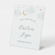 Über dem Mond blauer Text-Zeichen Sockelschild