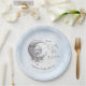 Wir sind über dem Mond mit eleganten himmlischen Baby-Duschpapier-Tellern in blau und silber grau mit einem schönen Mond und dem Babygesicht, Diamanten und Sternenstaub. Boy Baby Dusche Geschirr, leicht personalisieren den Text. Kate Eden Art