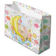 Ein schöner großer Geschenkbeutel mit einem schlafenden Bären in farbenfrohen Sternen und Wolken