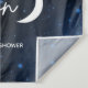 Über die Mond-Kulisse für eine Babydusche für einen Jungen oder ein Mädchen. Party-Banner zum Himmelsthema mit Mond und Sternen auf einem Galaxiehintergrund. Ideal für die Foto-, Wand- oder Tischdekorationen.