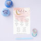 Mit diesem Spiel, das wie eine Scavenger-Jagd in der Handtasche oder einem anderen Gegenstand ist, können Sie sich bei Ihrer Dusche amüsieren! Fügen Sie den personalisierten Text mithilfe des Vorlagenformulars hinzu. Verwenden Sie das Wertpapier, um das Schreiben zu erleichtern.