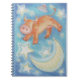 Hey diddle diddle, Daisy die Kuh ist buchstäblich "über dem Mond" und im Weltraum! Notebook mit einem blau, orange, gelb und weiß anpassbaren Design für Sie, um mit Ihrem eigenen Text, Bildern und Ideen zu personalisieren. Bild erstellt aus einem von Jess Perry zeichnend Farbstift.