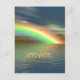 Über dem Regenbogen - schöner Regenbogen gegen einen blauen Himmel, der im Wasser landet, mit dem Wort "irgendwo" darunter. Inspiration, motivierend, aber dennoch provokant - ideal für jede Gelegenheit oder Beziehung.