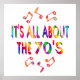 Wenn die 1970er Jahre das Jahrzehnt sind, an das Sie sich erinnern und Liebe haben, teilen Sie uns, wie Sie sich mit diesem farbenfrohen Design fühlen, mit Musiknoten und den Worten Es ist alles um die 70er Jahre.